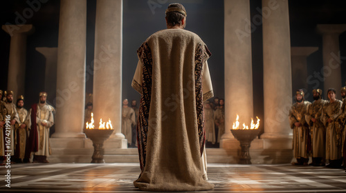 Joseph stands in Egypt before the Pharaoh’s throne, embodying wisdom, divine favor, and the fulfillment of God’s plan through faith and perseverance..