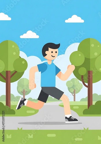Joyful Cartoon Man Jogging Through a Sunny Park Illustration Scene
