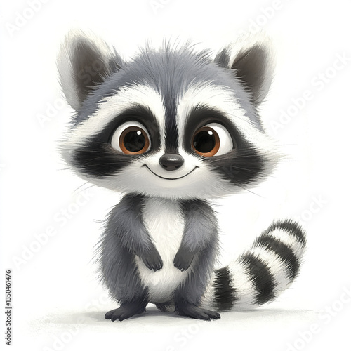 raccoon, cartoon, joyful, mischievous, grin, fluffy, fur, cute, animal, illustration, character, playful, adorable, happy, smiling, timberland, creature, friendly, charming, fun, whimsical, delightful, expressive, big eye, black-and-white, standing, digital artwork, fantasy, children