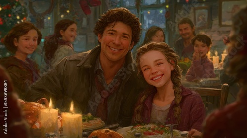 family, celebration, holiday, joy, happiness, warmth, togetherness, dinner, meal, laughter, children, friends, gathering, festive, fun, smile, love, tradition, decoration, cosy, light, food, turkey, candle, portrait, winter, cheerful, culture, sharing, bonding, home, bliss, memory, joyfulness, honed, atmosphere, together, people, face, holiday, energy, scene, emotion, spirit
