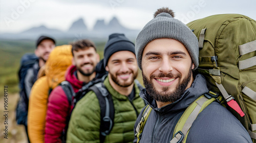 joyful, hiking, adventure, group, happy, hiker, enjoying, nature, smiling, exploring, great, outdoors, beautiful, mountain, landscape, brainstorming, digital, art, scenic, trekking, excursion, trail, wilderness, expedition, enthusiastic, journey, activity, breathtaking, view, natural, environment, mountainous, peak, ecstatic, fresh, air, picturesque, rugged, terrain, forest, exploration, ecotourism, fitness