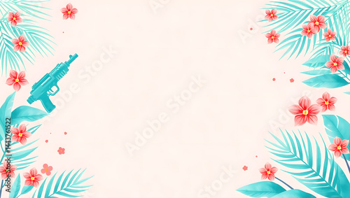 Joyful Songkran Illustration Tropical Flowers & Water Gun