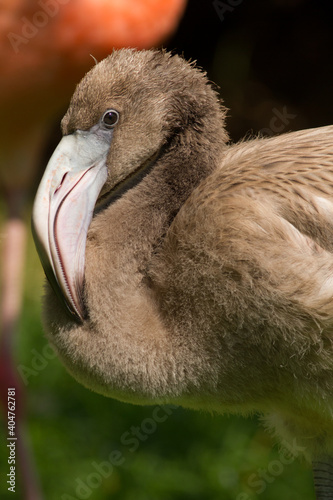 Juvenile Flamingo looking at camera, acting funny