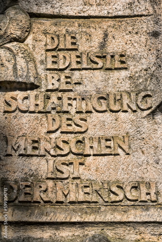 kamenz, deutschland - inschrift - die edelste beschäftigung des menschen ist der mensch