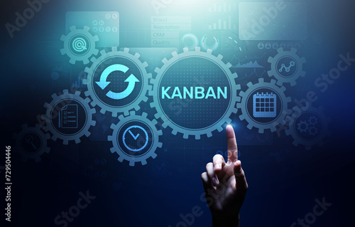 Kanban work flow process management system concept on virtual screen.