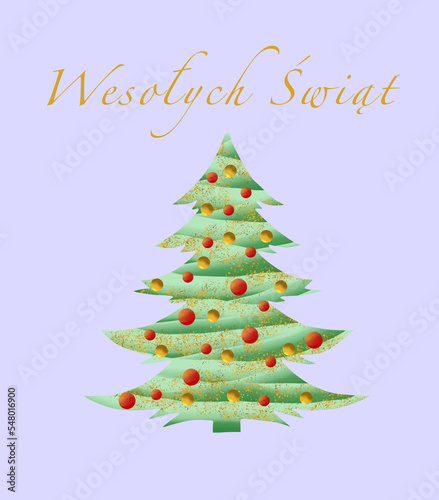 Kartka świąteczna, Boże Narodzenie, Wesołych Świąt, Choinka z bombkami.