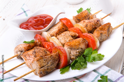 chicken, shish, kebob, closeup, lamb, shashlik, tomatoes, onion, roast, dish, stick, turkey, meal, bar-b-q, pepper, paprika, beef, plate, fried, delicious, antipasto, white, red, eatery, grill, epicure, poultry, roasted, traditional, pork meat, tenderloin, vegetable, ketchup, dinner, tasty, grilled, lunch, skewer, cookery, cooked, menu, bar-b-q, food, sauce, meat, portion, hot, bar-b-q