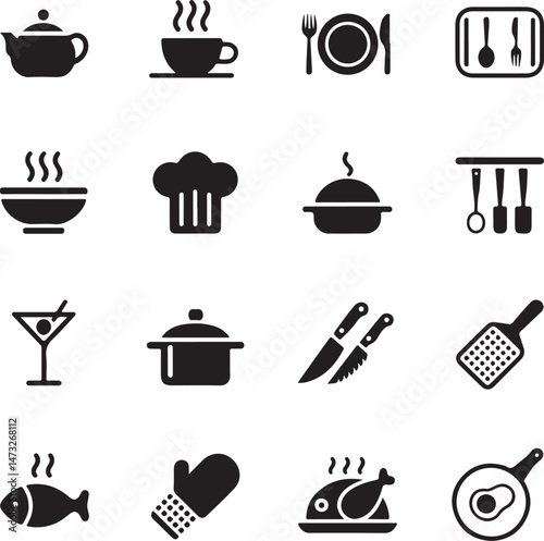 “Kitchen & Food Icon Bundle | Cooking SVG, Utensil Clipart, Flat Kitchen Vectors for Logos, Menus & Crafts”