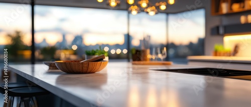 kitchen, interior, home, house, design, modern, architecture, countertop, bowl, wooden, table, furniture, luxury, domestic, lifestyle, apartment, room, window, city, light, sunset, cooking, appliance, clean, minimalist, contemporary, indoor, decoration, elegant, surface, cook, beautiful