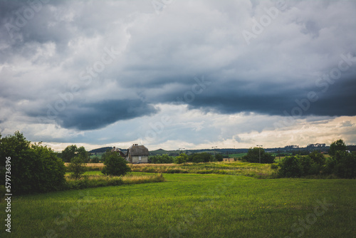 landscape, house, heaven, field, building, grass, farm, nature, lock, countryside, green, church, summer, rural, architecture, countryside, cloud, tree, aged, hill, mountain, country, meadow, barn