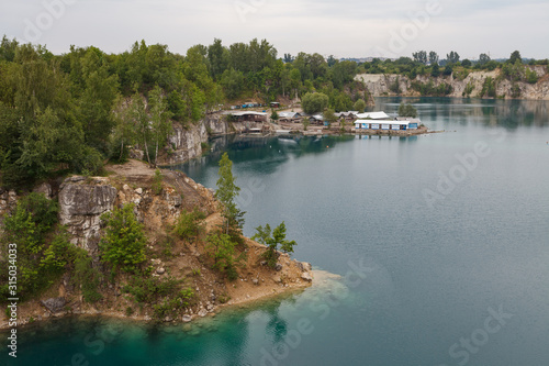 KRAKOW, POLAND - MAY, 2, 2018: Zakrzowek Lagoon, former quarry with clean azure water. Cracow, Poland.