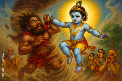 krishna, baby, infant, daemon, whirlwind, mythology, hindu, divine, power, mischievous, protection, miracle, strength, epic, supernatural, legend, hero, childhood, defeat, triumph, cosmic, battle, analysis