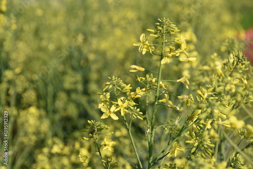La colza gialla tipica dei mesi primaverili, da colore caldi alla vista. Alessandria, Piemonte, Italia
