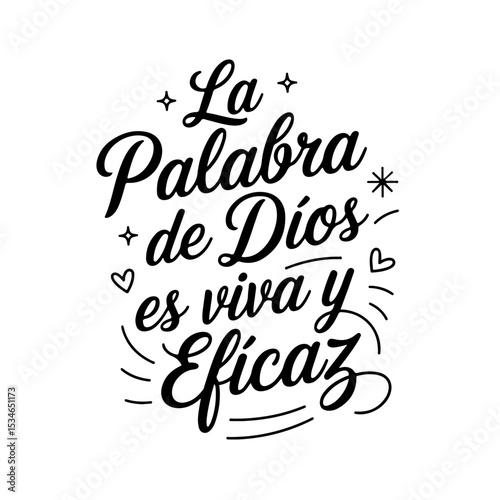 La Palabra De Dios Es Viva Y Eficaz.. Spanish Religious Quote Vector Design Isolated on White Background