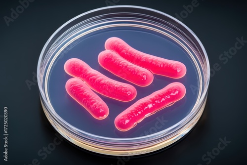 Laboratory petri dish featuring pink bacterial cultures showcasing biotechnology innovations and scientific exploration into microbial research and genetic engineering techniques