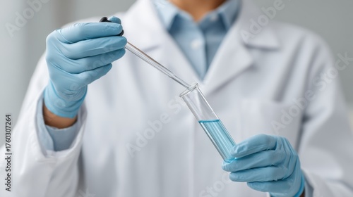 Laboratory Scientist Conducting Experiment with Pipette and Test Tube, Preparing Chemical Solutions in Modern Research Environment
