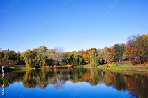 lake, duck pond, autumn, poland, tree, tree, foliage, park, warsaw, water, nature, lakeshore, season, october, leafage, cultivated, scene, tranquil