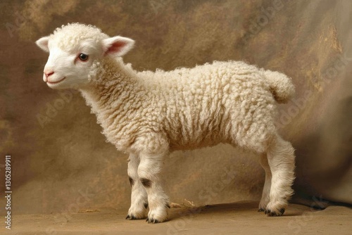 Lamb Profile. Adorable Baby Sheep Innocently Gazing in the Green Farm Field