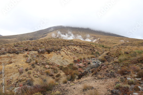 landscape, mountain, heath, mist, national park, hike, volcano, panorama, heather, new zealand