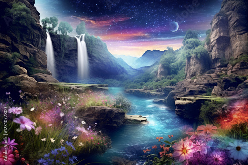 landscape, magical, dimension, fantastic, planet, surrealist, creative, voyage, inspiration, peaceful, tranquil, dream, discovery, poster