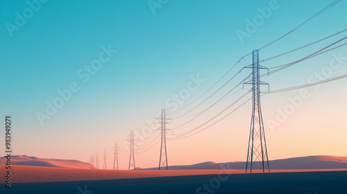 tower, electric, energy, transmission, line, pole, landscape, sky, background, space, copy space, network, power, voltage, wire, dielectric, powerful, aerial, technology, modern, technically, tech, anchor, suspension, straight, cable, industry, architecture, structure, station, substation, electricity, pylon, electrical, high, blue, industrial, steel, line, powerline, metal, sun, sunrise, silhouette, evening