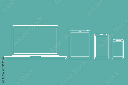 laptop, phone, tablet silhouettes,outlines on a green background with empty white screen vector illustration