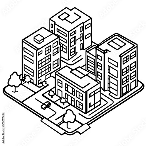 apartment, complex, interconnected, building, green, space, parking, area, residential, urban, communal, modern, housing, amenity, landscaping, roomy, lifestyle, metropolitan, city, living, architecture, development, community, illustration, art, vector, graphic