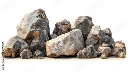 large, boulder, desert landscape, dry, arid, cracked, surface, weathered, natural, isolated, pure, white background, cut-out, precision, texture, detailed, realistic, studio, lighting, macro, closeup, rugged, earthy, barren, element, rocky, terrain, premium, composition, arrangement, highlight, shadow, depth, wilderness