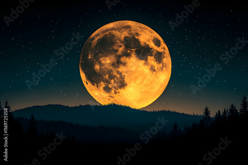 night, moon, full, orange, large, mountain, range, dark, silhouette, star, sky, celestial, nature, landscape, scenic, astronomy, space, cosmic, night sky, full moon, mountain chain, dark sky, night scene, beautiful, awesome, majestic, mysterious, magical, serene, peaceful, calm, quiet, tranquil, shadow, light, glow, illumination, horizon, forest, tree, wood, pine, coniferous