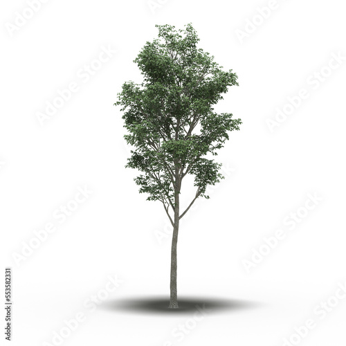 large tree with a shadow under it, isolated on white background, 3D illustration, cg render