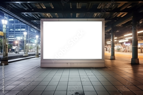 Large White Billboard at Train Station. Shallow depth of feld
