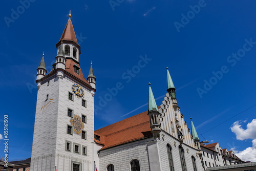 Late-gothic style Old Town Hall (Altes Rathaus, 1470 - 1480) building (now Toy Museum - Spielzeugmuseum) at Marienplatz square in Munich. MUNICH, GERMANY.