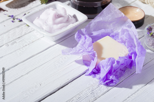 moisturiser, hand cream, lavandula, flower, face cream, soft soap, bunch, bouquet, ointment, lotion, tincture, extract, perfume, essence, oil, pink, beige, bath salt, wooden spoon, variation, hygiene, spa, white, bright, purple, bodycare, scent, herb, china, porcelain, bowl, beauty product, sample, wooden, wood, rustic, table, background, copy space, aromatherapy, pot, glasses