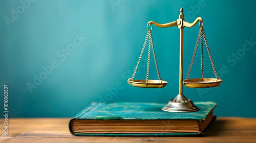 law book and scales on the table with a blue background, representing an oasis for legal services
