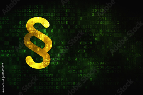 Law concept: pixelated Paragraph icon on digital background, empty copyspace for card, text, advertising