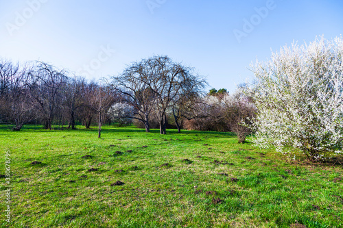gardening, nobody, scenery, beauty, tree branch, floral, springtime, view, scene, day, lawn, sunny, blooming, summer, tree, green, nature, season, grass, spring, blossom, rural, garden, beautiful, flower, leaf, cherry, landscape, background, plant, natural, agriculture, apple, colours, white, park, bright, meadow