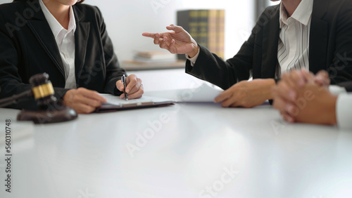 Lawyer discuss the contract and legal document agreement in office. Law and legal concept