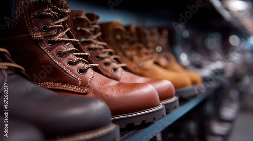 Leather shoes displayed on shelf fashion retail commerce consumer lifestyle concept