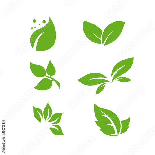 Leaves icon vector set isolated on white background. Various shapes of green leaves of trees and plants. Elements for eco and bio logos.