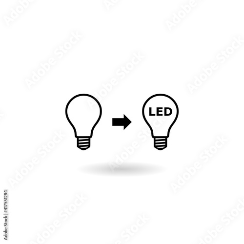Led and usual light bulbs icon with shadow
