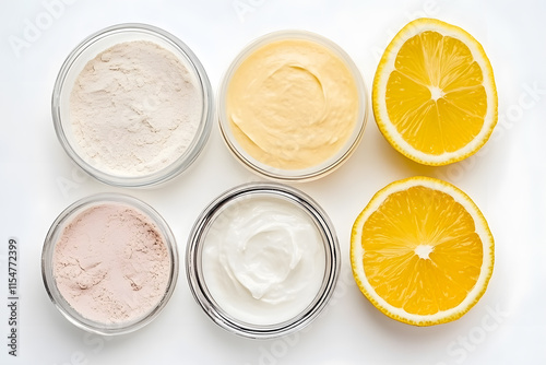 Lemon and creamy sauces creation kitchen culinary art bright environment top view flavor exploration