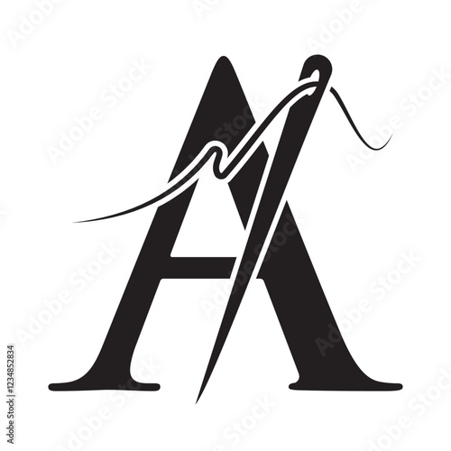 Letter A Sewing Needle Logo Design for Embroider, Textile, Fashion, Cloth, Fabric Symbol