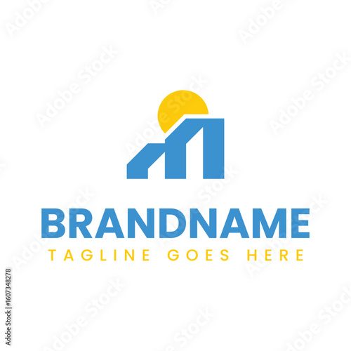 Letter M Building Logo, symbolizing structure, stability, and urban development
