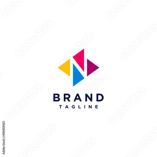 Letter N Between 4 Colorful Triangles. Minimalist logo design of four colorful triangles forming the letter N on the negative space.