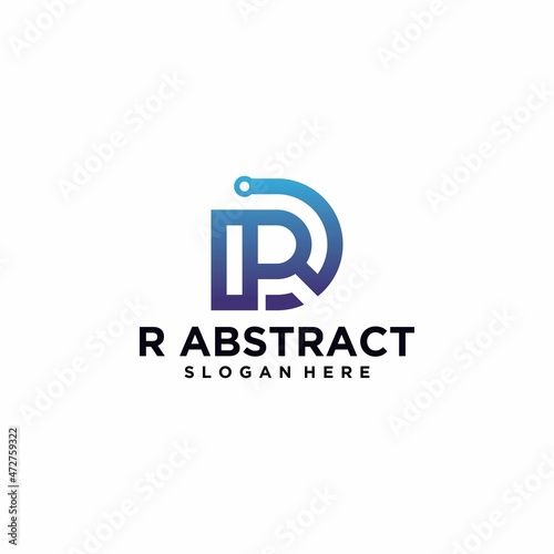 Letter R logo square shape with gradient color technology abstract digital logo letter R
