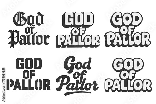 Lettering Artistic Fusion. God of Pallor. Set lettering. harmonious lettering variations of the same emblematic concept (Gothic-inspired decorative type, 3D