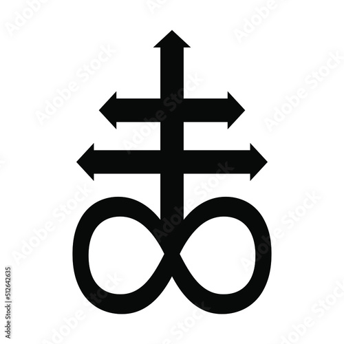 Leviathan cross, the alchemical symbol of sulfur or satanism. T-shirt print for Horror or Halloween. Trend illustration isolated on white background. Vector EPS 10.