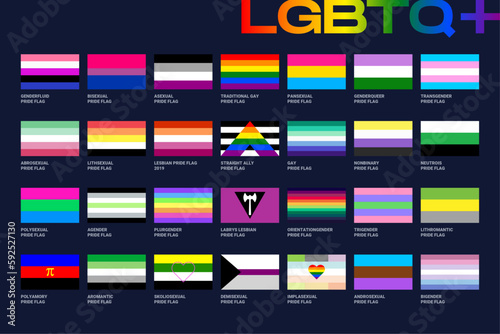 LGBT sexual identity pride flags gender collection. Flag of gay, lesbian, transgender, bisexual. Vector Illustration