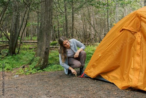 camping, couple, tent, outdoors, forest, nature, teamwork, hiking, setup, shelter, tree, travel, vacation, adventure, wilderness, togetherness, bonding, preparation, timberland, calmness, friendship, orange, rural, lifestyle, connection, casual attire, gear, escape, leisure, rustic, smiling, joyful, life events, natural, serene, femininity, authenticity, picnic, relaxation, weekend, harmony, freedom, real, backpacking, cooperation, campground, canada