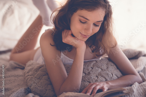 lifestyle and people concept:Young woman lying in bed while read